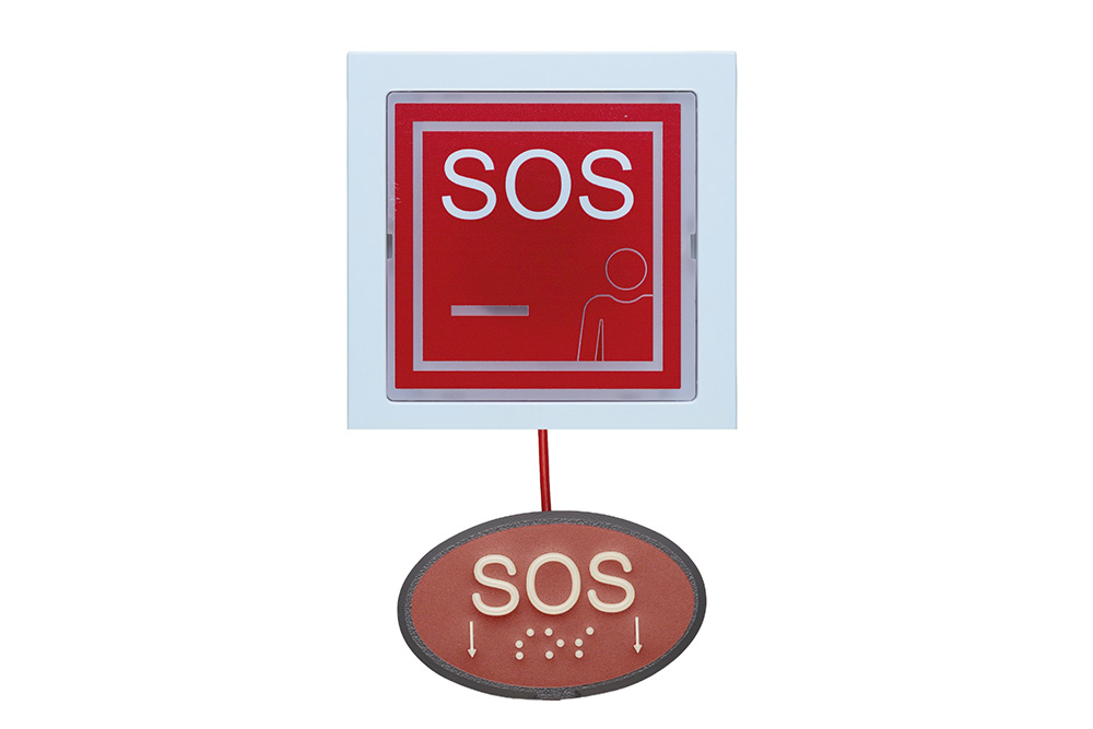 Die Sender im WC sind batteriebetrieben und funkgesteuert, was den Einbau ohne aufwendige Verkabelung ermöglicht. Die großen Taster und die zwei Zugknebel sind mit Braille- und erhabener Profilschrift versehen und lassen sich in der Höhe individuell anpassen – perfekt abgestimmt auf die Anforderungen der DIN 18040-1.